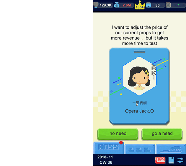 Choice is the key element of this game:Should you sacrifice your games’ quality for a shorter develop progress?How should you maintain the balance between players and your company's benefits?