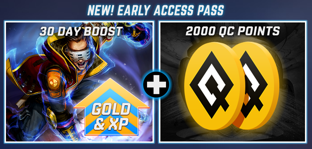 The Breach Early Access Pass not only gives you access to Breach, but gives you a 30 day boost to level your characters quickly and generate more gold, and an additional 2000 QC points (a $20 value) to unlock new classes and costumes!