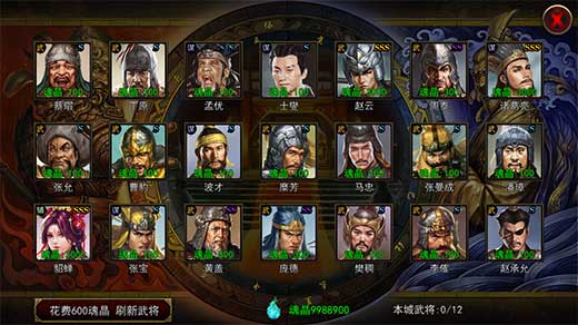 1、城主府升到2级后,会出现将军府,可以在将军府中招募将领。升级将军府能增加将军府容纳将领的位置。游戏开局送了一定数量的魂晶用于招募武将,攻打其他玩家及NPC能获得魂晶。将领按稀缺度分为s、ss、sss三个档次。s将领价格为100魂晶、ss将领价格为300魂晶、sss将领价格为3000魂晶。因此开局的时候是无法招募稀缺度最高的名将。需要在游戏中攻打NPC及其他玩家获得魂晶后,才能招募更高级的将领。将领按类型分为:武将、谋士和辅助,游戏中每场战斗最多可以上阵5名将领,不同类型,技能将领的搭配能带来不同的战斗能力和效果,每个将领具体的数值和技能可以在游戏中查看将领的说明。特定武将之间还存在羁绊,有羁绊的武将一同上阵,能带来战斗力增益,所以玩家在招募将领的时候,要注意到武将的羁绊及搭配。