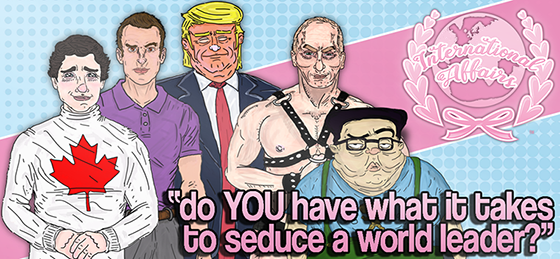 International Affairs challenges YOU to romance powerful heads of state while attempting to uncover a sinister and horrifying threat to global security. With jaw-dropping dialogue, outrageous plot twists, and lavishly illustrated art, the prospect of achieving world peace has never been so sensual!
