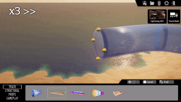 Easy to use. Node-based editor allows you to quickly create curved tracks and tubes for players to race along