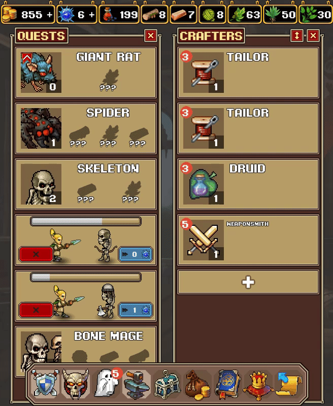 In this addictive and engaging game, you'll send your Heroes out on epic quests to fight enemies and gather materials while your Crafters use those materials to create weapons and armor. The possibilities are endless, with over 100 pixel-art Heroes and enemies.