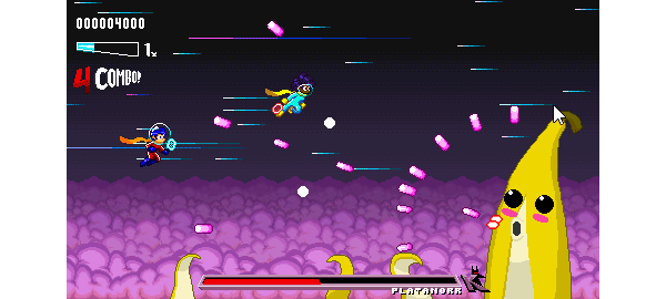 Flying over whimsical worlds filled with vivid colors, it’s just you, a stylish scarf, a laser tennis racket and a horde of fluffy enemies trying to blow you up back to the ground. Mixing the classic genres of Shoot ’em ups and block breakers, Sky Racket is the world’s first “Shmup Breaker”!
