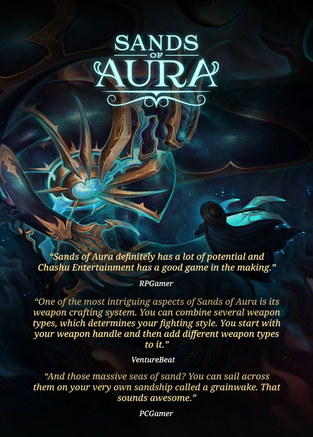From the helm of your nimble grainwake, carve across the perilous sandseas to confront the source of this newfound terror, but don’t expect a guiding light or a red X on a map. You’ll chart your own course forward--behold the open seas, and choose the heading you best see fit.