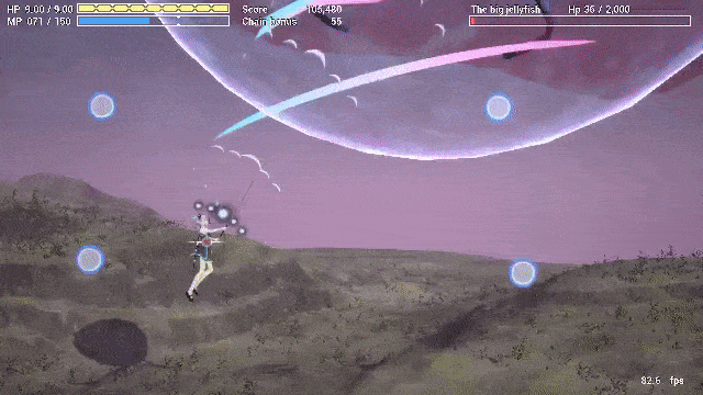 A derivative work of Touhou Project. This game is also a derivative work of other derivative works. Play as Konpaku Youmu to fly and shoot enemies. You want vertical scroll or horizontal scroll ? This game give you both of them.