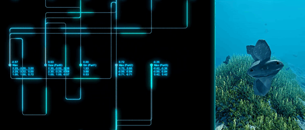 The nervous system of a virtual lifeform is a pipeline computer where, every moment, data from sense organs passes through a network of neurons and finally contracts a muscle in a specific body part. Creatures swim just like real sea-life, applying torque at their joints to push against the water in a way coordinated to propel themselves forward.