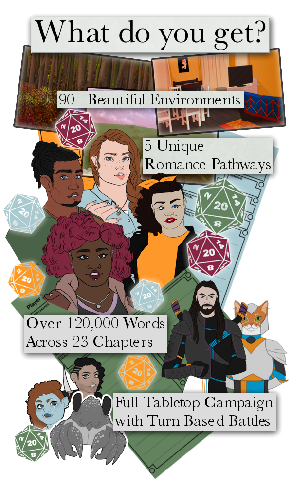 Roll+Heart is a dating simulation and visual novel set within the adventures of a tabletop game group. The game includes tabletop battles, a thrilling campaign and a variety of exciting date opportunities. During this demo you can experience the first tabletop session and go on first dates.