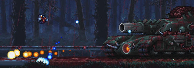 Iron Meat pays homage to classic run-and-gun titles from the past, with intense boss fights fixed into multiple phases. With three difficulty settings to choose from, players can put their skills to the test, where a higher difficulty is rewarded with an even more challenging boss battle.