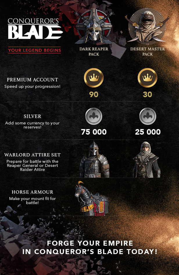 Get the Desert Master Collector’s Pack and start writing your legend in Conqueror’s Blade today!