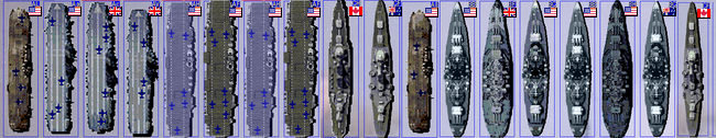 Capital ship types:Light Aircraft Carrier, Escort Aircraft Carrier, Anti-Sub Aircraft Carrier, Aircraft Carrier, Fast Aircraft carrier, Heavy Aircraft Carrier, Fleet Aircraft Carrier, Light Cruiser, Escort Cruiser, Anti-Sub Cruiser, Cruiser, Heavy Anti-Sub Cruiser, Heavy Cruiser, Fleet Cruiser, Battle-Cruiser, Battleship, Heavy Battleship, Fleet Battleship
