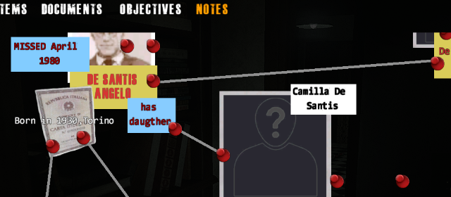 A clipboard, to be completed during the game, will also help you to understand relationship between characters and the story behind them just like a real detective.