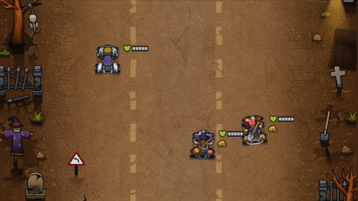 While the sight of some looney pedestrians nonchalantly walking across a busy road is nothing new in Rude Racers, their deadly shenanigans go up a level as they too are in on the action with ridiculous face-paints, masks and even more garbage (and slime!) to throw at you. Forget the ghosts, just beware of these creepy buggers!