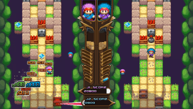 PathBlasters takes you on an explosive and nervous race against a big monster. Make your way by destroying everything on your path using your bombs, solo or against a friend. Your adventure will take you through biomes as uniques as they are colorful.