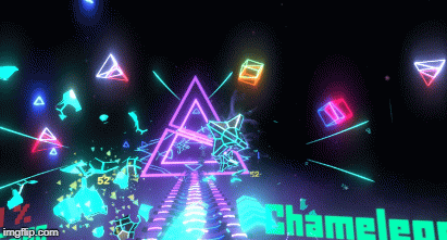 Chameleon: Neon Beats and Laser Disks will momentarily turn their color to neutral blue. Then you can hit all Beats with both light discs, regardless of color.