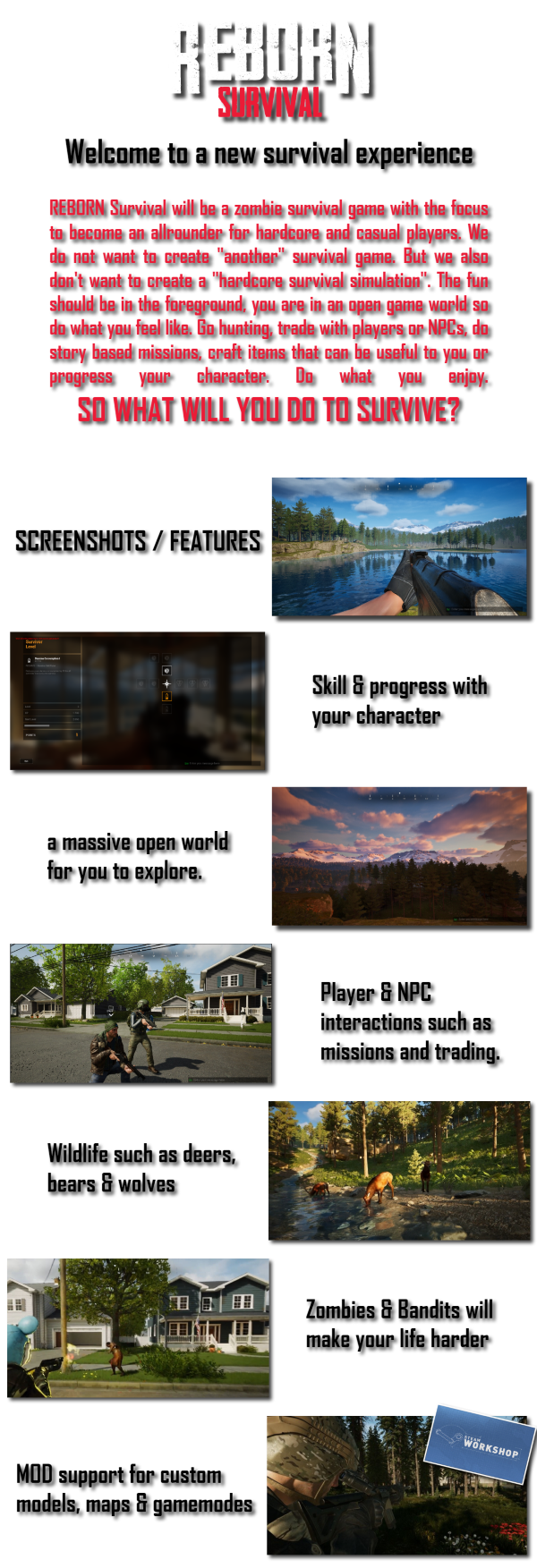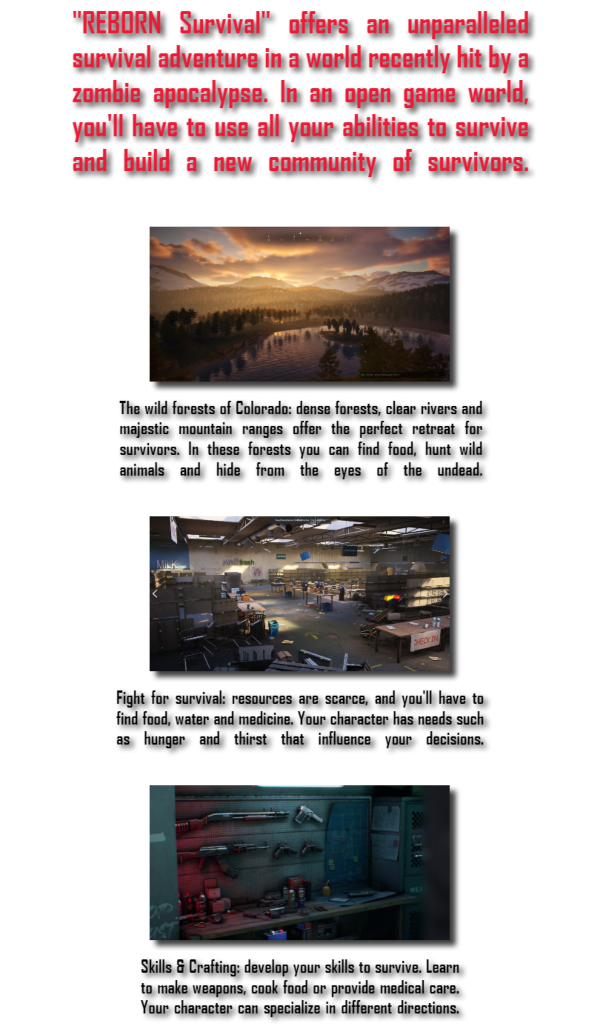 REBORN: Survival is an exciting casual-arcade zombie survival game set in a vast 8x8 km map named "Colorado." Players must navigate this post-apocalyptic world, collecting resources, crafting items, battling zombies, and seeking refuge in safe zones while avoiding ruthless bandits.