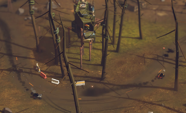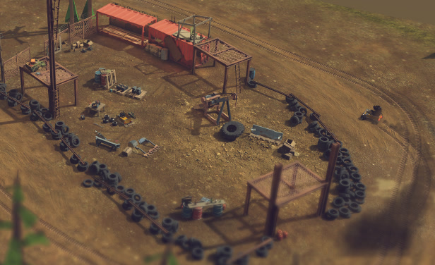 There are many random things which make the racing different every time - AI can sometimes miss the checkpoints so you never know who will win. Car engines can have a failures. The boxes on the road are filled with random stuff - you never knows if it's safe to collide with. The drone-like camera sometimes look at weird angles so you cannot clearly see your position. Some of the track locations are covered by obstructions so you need to use your intuition when your car is not visible for few seconds. There are no bounds on track so beware of the edges - or force your opponent to drive there!
