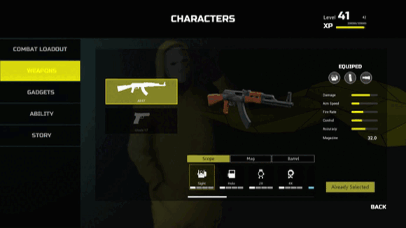 Characters can be leveled up by playing and after specific levels they will have new gear