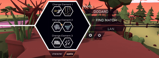 The spells you use, that's completely up to you! Spells are categorized into 7 elements: Fire, Water, Ice, Air, Stone, Wood and Electricity. Every element has many spells to choose from, which makes the possible combinations almost endless. Pick out the 3 elements you want to fight with and equip 2 spells to each.