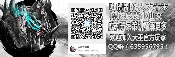 如果你想和其他“道友”相互沟通,想要吐槽制作人大米米,想要撩拨小仙女皮皮,可以加入我们的官方QQ群(635956795),坚持参与我们的测试,成为《大巫》玩家策划,与我们一起登入开发者名单,期待游戏发布好评如潮,游戏大火,我们一起吃肉;如果游戏没火,我们蹲马路边一起吃两块钱串串O(∩_∩)O哈哈~