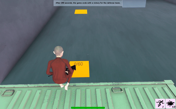 Up to 20 players can play and at least 2 players can play. Psychological warfare between attackers and defenders take place. Attackers start with 60 bullets. And defenders start without a bullet. so defenders must kill as many attackers as possible before they reach defenders' side.