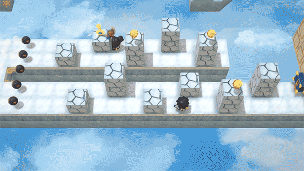 Lift higher and throw harder!In this game, you can lift your partner over your head, and throw him/her out to reach higher or farther place! To fly over the abyss or to fly into the fiery magma, it’s your call!