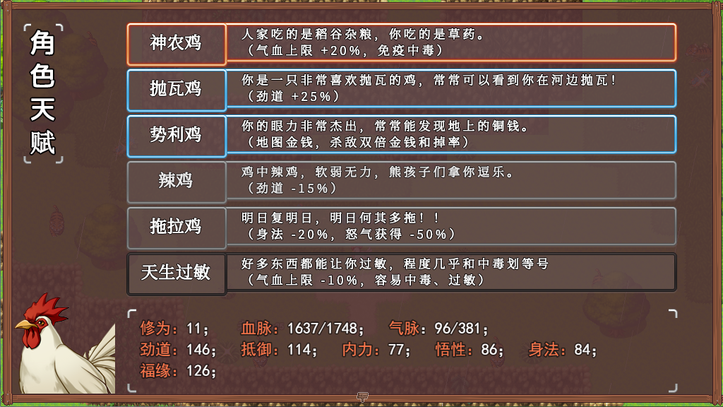 Props (道具): You can try the explosive power of drunkenness, try to poison your opponent... It can be a chicken that has always been upright, or it can be used to control violence.