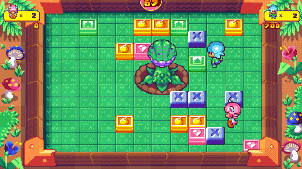 Pushy and Pully in Blockland Push is a cooperative arcade game with a retro feeling.