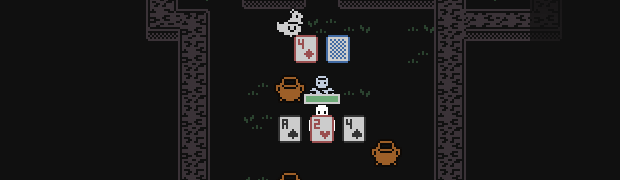 RogueJack is a blend of old school dungeoning that utilizes BlackJack (or 21) as its battle system. As you level your character, new rules come into play—like multiple cards to choose from and chances those cards will will be face up or face down.