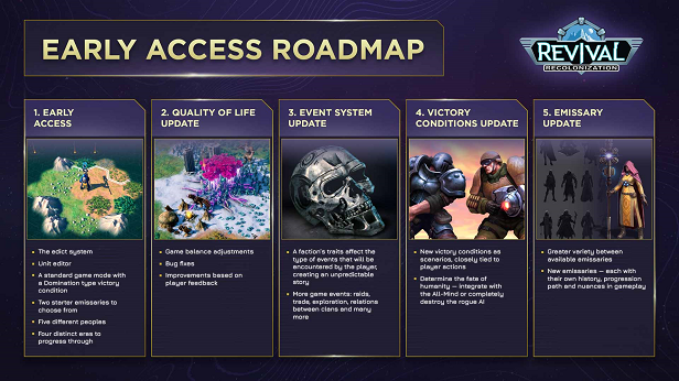 Set in a post-apoc version of Earth, Revival is a 4x strategy game where the world and its rules can change at key moments, creating a deep and highly replayable experience. Explore a transformed planet, negotiate or conquer new territories and bring the light of civilization to regressing human colonies in order to prepare mankind for war with a despotic entity.