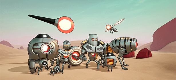 Bots come in different types. Some explode, others heal, jump, or buff their allies.