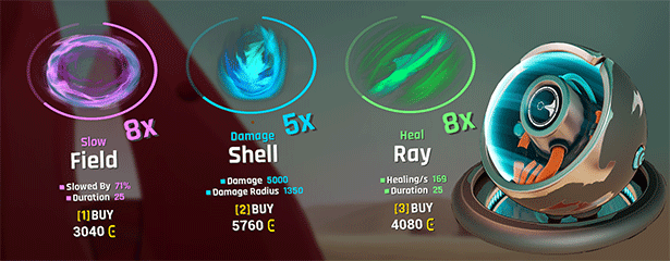 Don’t forget you have help above. Slow time, stun enemies, heal allies or just deal damage. You can buy 1 out of 3 random abilities that are generated each round in the Support Terminal. Each purchase adds charges to your Markergun. Try to be cost efficient and only use them on large groups!