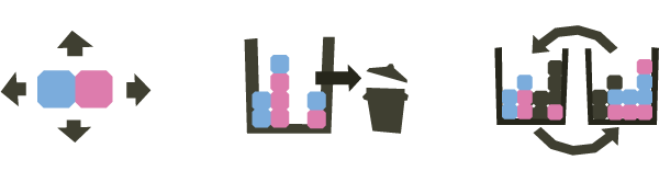 Move pieces left, right, down and up! Pieces don't descend by themselves. Take your time to think, and move fast when you can!