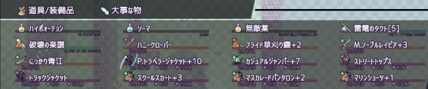 ・多彩なスキル、アイテム、着せ替え要素上の画像群でも示した通り、本作は状態異常差分や装備の着せ替えパーツが爆裂に豊富です。