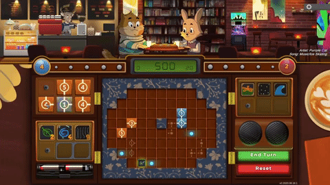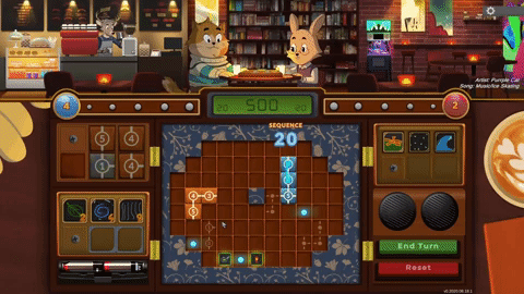 Good news! The electronic board game "Cascade" is out, and patrons of the local board game cafe are playing!