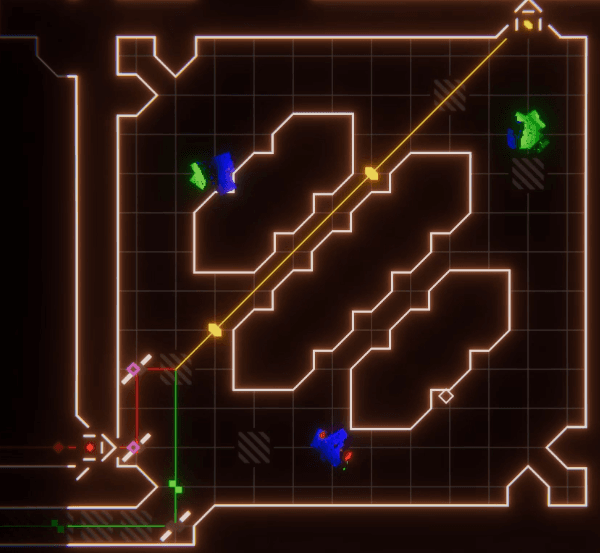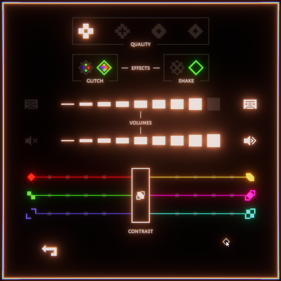 SOLAS is a game based around the combination and separation of these pulses, but has been designed from the ground up to not be reliant only on colour. SOLAS’ glyphs each have a unique shape and profile, and there are customisable contrast settings, making it accessible to colour-blind players.