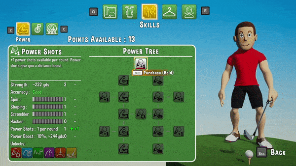 Gowf is an arcade style golf game with a classic 3-click hit system inspired by old school golf games. Features an RPG style adventure mode where you must win tournaments to progress in the game. Level up skills, upgrade equipment, unlock and explore courses in this relaxing golf adventure!