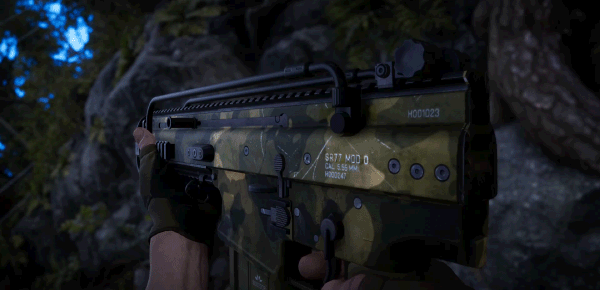 Find chips in the field that switch the SR77 from a fast submachine gun to a silent bow, sniper rifles, or even powerful fire and grenade launchers.