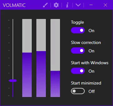 Volmatic is the perfect automatic volume controller for your multimedia needs. It has been designed to give you a constant audio experience, no matter the kind of content or file format you are watching. You are no longer forced to adjust the volume every two minutes.