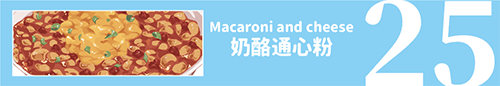 炸鸡就是个很好的例子。苹果派,汉堡,等等都是类似的美国食品。一般这类东西分量大,很容易填饱肚子。而奶酪通心粉也不是例外。