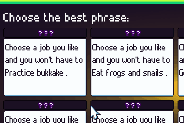 Chuckle Phrase Builder is an online multiplayer game where the objective is to build the funniest sentence. At each round of the game, a hole card is selected by the judge.