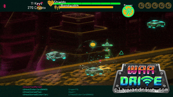warDrive is a casual rail shooter and idler. Lock-on then unleash a barrage of cyber attacks. Dismantle enemy drones, pickpocket crypto wallets, and fight your way to freedom. Buy upgrades, passive crypto mining, and progress through the story.