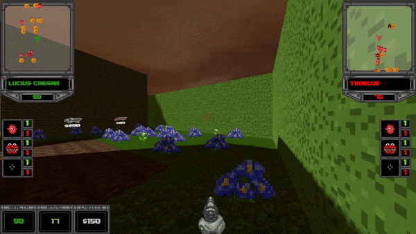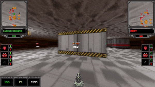 Return to Sender is a competitive horde mode first-person shooter with retro graphics reminiscent of Wolfenstein 3D and a multiplayer mode inspired by Tetris.