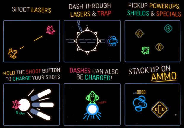 recommended. Your ship can move, shoot and dash! Hold shoot or dash to charge your attacks.