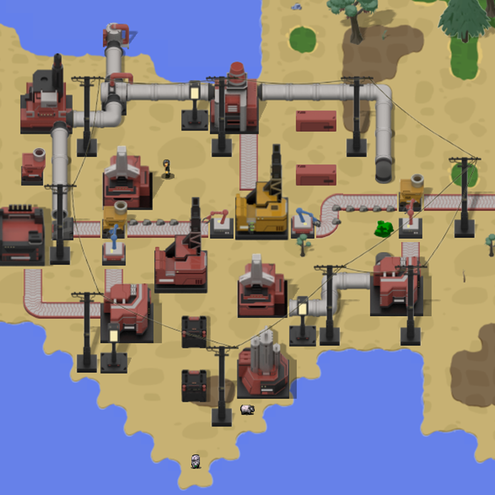We have designed an automatic system, including a series of buildings, such as mechanical arm, conveyor belt, separator, factory, furnace, etc., which will form a complete closed loop and continuously convert raw materials into primary products, intermediate products and advanced products.