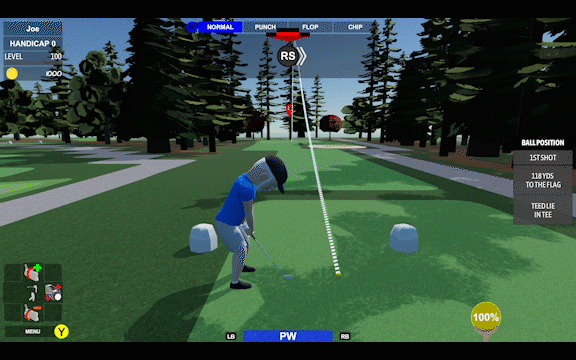 As a player, you are given all the tools you need, but must make the decision on what kind of shot (normal, punch, flop, chip), how to shape it (fade, straight, draw), and how hard to hit it. The game will not tell you any more than recommending a club to use. So lineup and take a few practice swings to determine your plan of attack. Practice swings will update the estimated shot trajectory, allowing you to determine if your current approach is going to work. Then it is up to you to replicate your practice swing once addressing the ball. And if you mess it up, hopefully you have one of your Mulligans available to redo it.