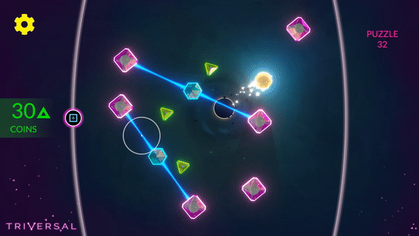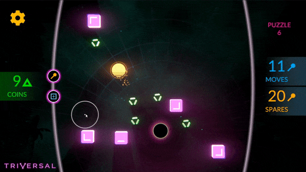 Pick Up and Play: Triversal is easy to learn and satisfying to master; simply add and remove elastic tethers to pull the light orb so it centers on the black hole. It’s as easy as 1-2-3.