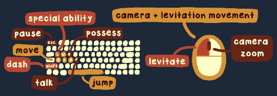 Mouse movement = Camera movement, levitation movement