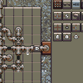 The numbers appearing on the pipe connections show the current pressure, from 100 when connected to a steam inlet, to 0 at any uncapped pipe end.
