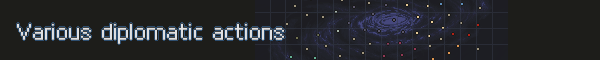 There are a dozen large factions and more local small forces in the galaxy. You can use diplomatic actions to increase your allies and vassals, and disintegrate the relationship between enemies.