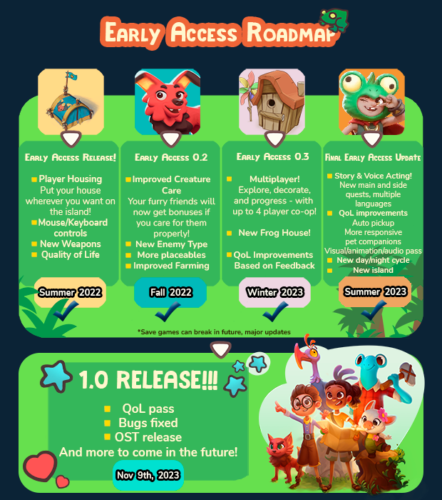 Play co-op in teams of 2-4 Steam friends and elevate your fun on the island to the power of frog! Everything in the game - farming, building, battling, unlocking new areas, quests - can be done together.